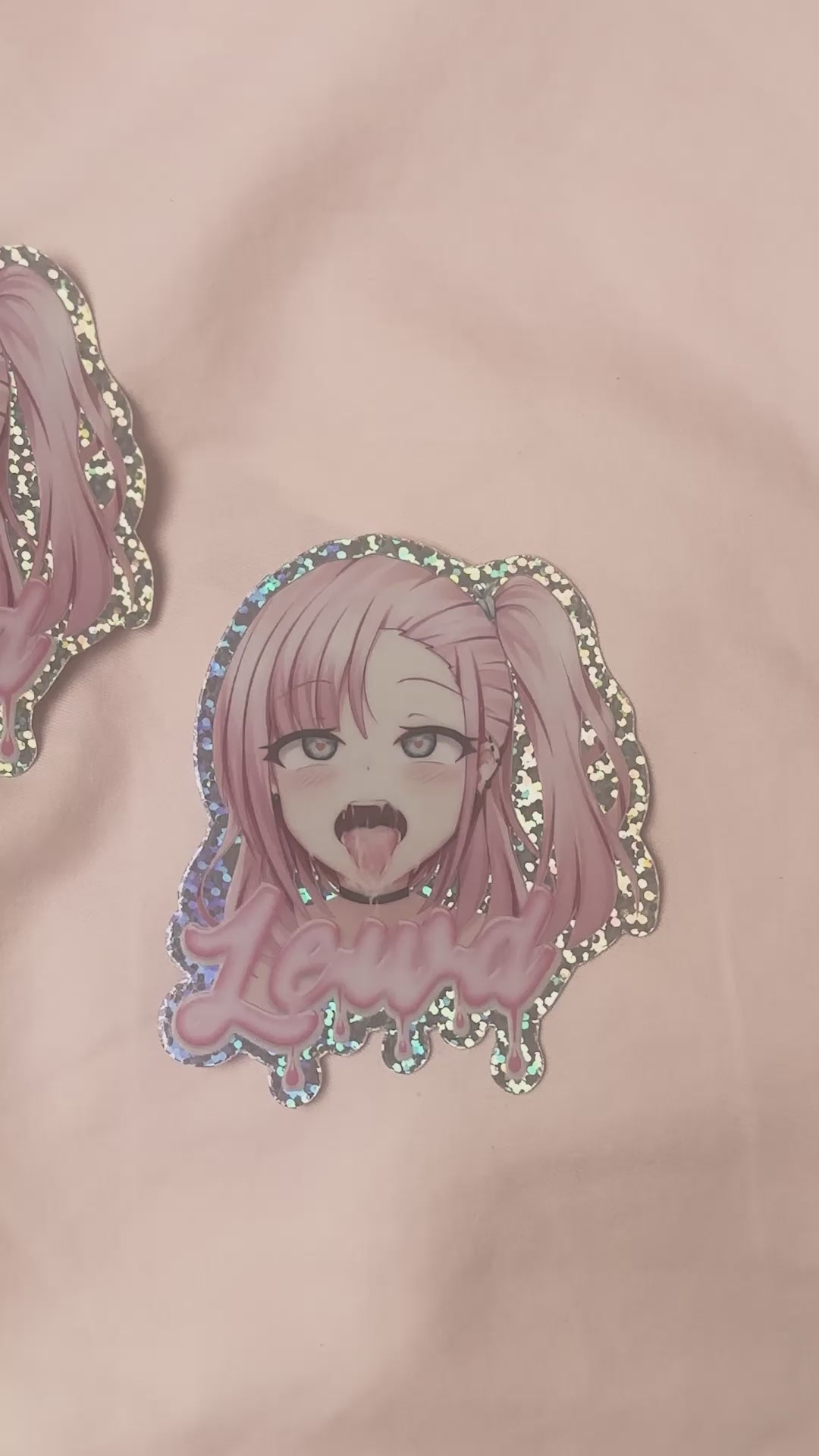 💖 But wait, there's more! 💫 This isn't just a sticker, it's the beginning of an exciting collection. This is the first drop in a series of exciting new designs that we'll be releasing. It's not just a sticker, it's the first piece of an exclusive limited-edition series, making it a must-have! The pink-haired anime girl's ahegao face, our unique logo, and the special glitter effect make it more than just a sticker. It's a way to express your love for anime fashionably and vibrantly.